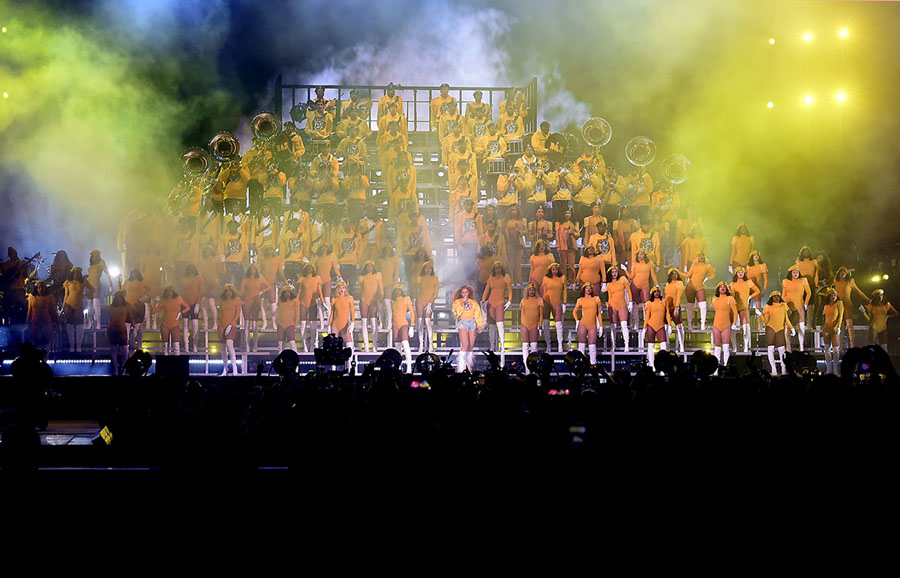 Read moreBeyoncé performs, backed by a full marching band, on April 14, 2018. #