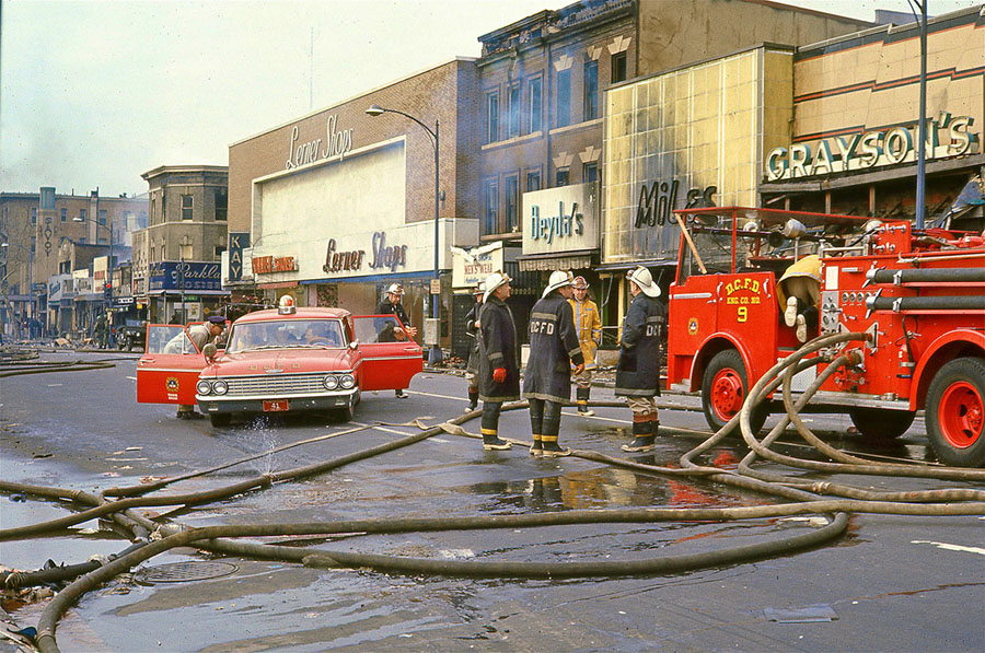 Read moreA major fire in Newark, New Jersey, drew a large crowd of onlookers watching firemen pour water onto the burning building on April 6, 1968. City officials had reported some firebomb incidents in response to the assassination of Martin Luther King Jr. #