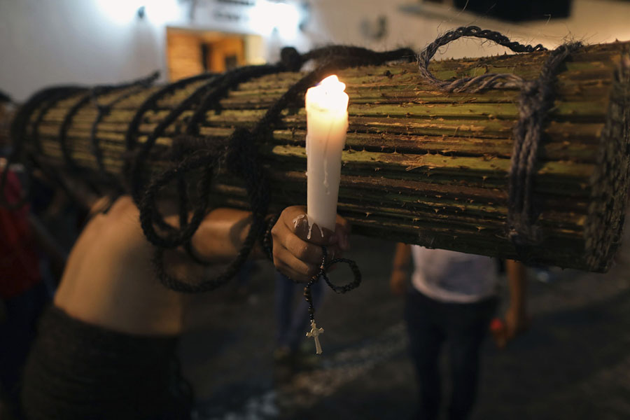 Read moreA penitent carries a bundle of thorny branches as he takes part in a Holy Week procession in Taxco, Mexico, on March 29, 2018. In Taxco, Roman Catholic brotherhoods preserve a Holy Week tradition that dates to the 1600s. In processions that last from Thursday evening into the early-morning hours of Friday, hooded penitents drag chains and shoulder bundles of thorny branches through the streets, as some flog themselves with nail-studded whips. #