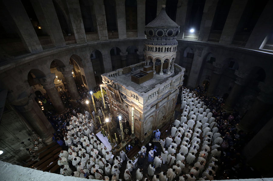 Read moreCatholic clergy walk during the Washing of the Feet procession at the Church of the Holy Sepulchre, traditionally believed by many Christians to be the site of the crucifixion and burial of Jesus Christ, in Jerusalem, on March 29, 2018. #
