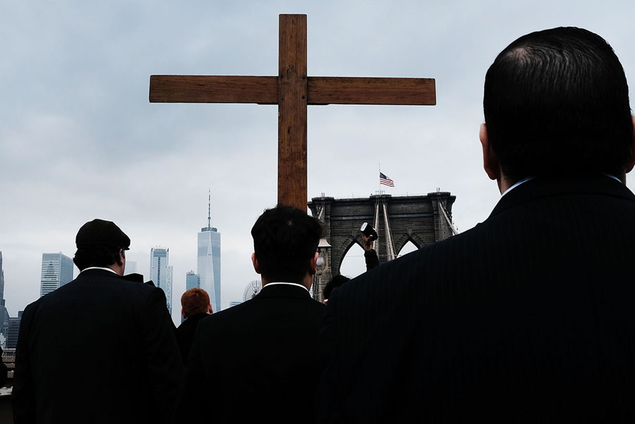 Read moreWorshipers walk to a station during the Way of the Cross procession over the Brooklyn Bridge on March 30, 2018, in New York City. The Way of the Cross is a traditional Catholic procession recalling the suffering and death of Jesus Christ and often includes Gospel readings, choral music, and readings at stations along the way. #