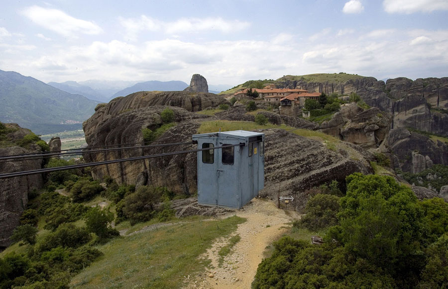 Today’s entry is the first of a semi-regular Travel Monday series, with virtual photo trips to interesting, unusual, difficult-to-reach, or simply beautiful parts of our planet. Today, we’re visiting the amazing clifftop monasteries of Meteora in central Greece. Monks and hermits have been finding refuge in this unique rock formation for more than a thousand years. Six Eastern Orthodox monasteries—some dating back to the 14th century—remain in place, still home to a small number of monks and nuns. Meteora is listed as a UNESCO World Heritage Site, and welcomes thousands of tourists every year. Gathered below, a collection of images of Meteora, the ancient structures atop its massive rock pillars, and the village and countryside below.