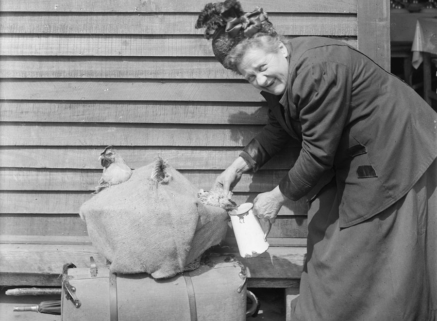Read moreThis French woman, forced by the Germans to leave her home, was able to save only a suitcase full of clothes and her two pet roosters, which she is happily feeding in front of the American Red Cross Refugee Hut at the Gare du Nord, Paris, on June 27, 1918. #