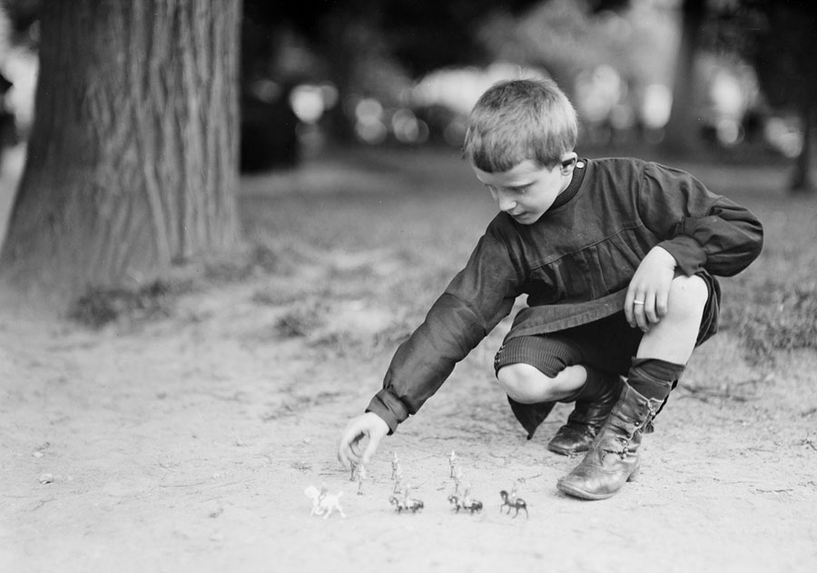 Read moreOriginal caption: "Andre Petit lives in one room in a busy street in Caen with his mother and his two brothers. Andre's 'Dear godfathers,' Co. C. of the 504th Engineers, sent him some money 'for a game.' He bought some Boche soldiers 'so that he could be the American soldier to kill them all.' August, 1918." #