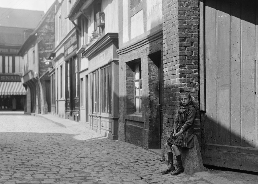 Read moreOriginal caption: "Jeanne Septvents is a beautiful French girl, 10 years old, whose father, for nearly a year a prisoner in Germany, has given his life for France. Jeanne has been adopted by Company 'E,' 6th Battalion of the 20th Engineers. When the American Red Cross photographer found her in the garden of her little stone house at Caen, she was playing with knuckle-bones that she had painted red, white, and blue in honor of her godfathers. She wrote them soon after she was adopted saying: 'I hope you are all in good health and not too unhappy at the front and I send big kisses to you all.' September, 1918." #