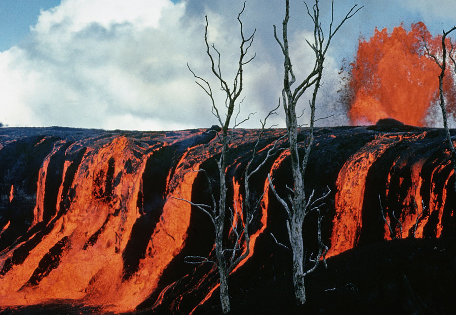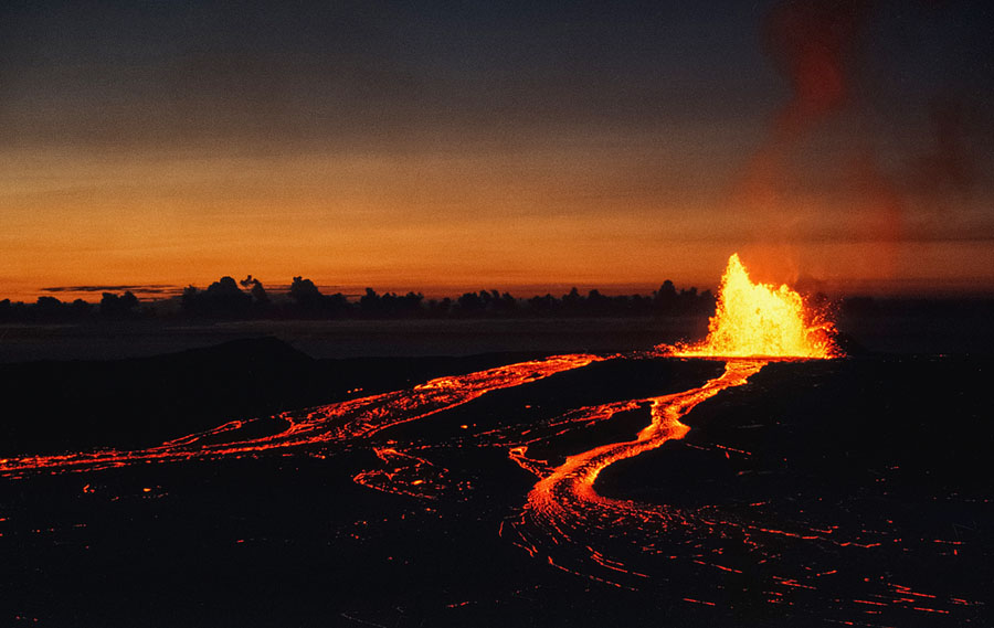 The volcanic activity in Hawaii today is part of the ongoing Pu’u O’o eruption—the longest-duration eruption ever recorded on Kilauea. The Pu’u O’o eruption has been active, with varying levels of intensity, since January of 1983. Looking back a few decades, Kilauea’s previous record-holder was the spectacular Mauna Ulu eruption, which lasted from May of 1969 until July of 1974, generating amazing lava fountains, cascading lava falls, and eventually adding 230 acres of new land to Hawaii’s Big Island. As we wait to see how these new eruptions will play out, take a moment to view some of Kilauea’s most striking photos from the Mauna Ulu eruption, which ended only 40 years ago.