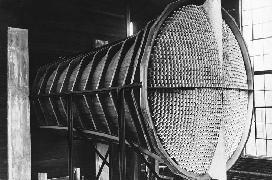 Read moreThe air intake for NACA tunnel number one. In 1920, the National Advisory Committee for Aeronautics (NACA) completed its first wind-tunnel facility, a copy of an existing British tunnel. The honeycombed open-circuit air intake ensured a steady, non-turbulent flow of air. #