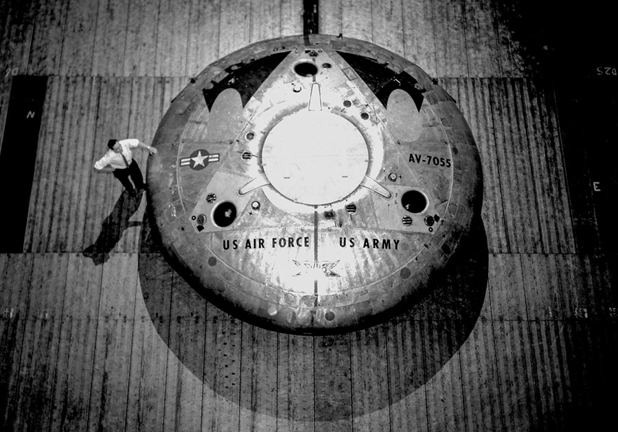 Read moreA technician on a ladder examines a Mercury capsule before it is tested in Langley's 30 foot by 60 foot wind tunnel. Much of the early work on the Mercury program was performed at Langley. #