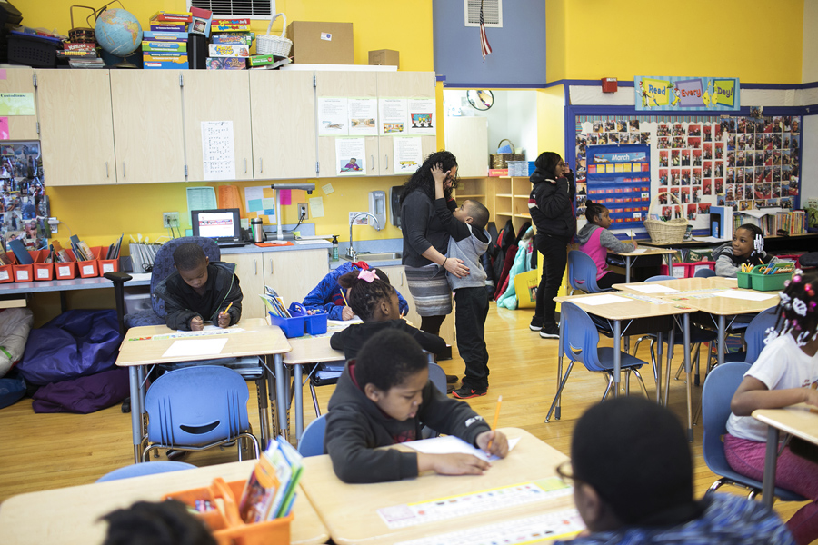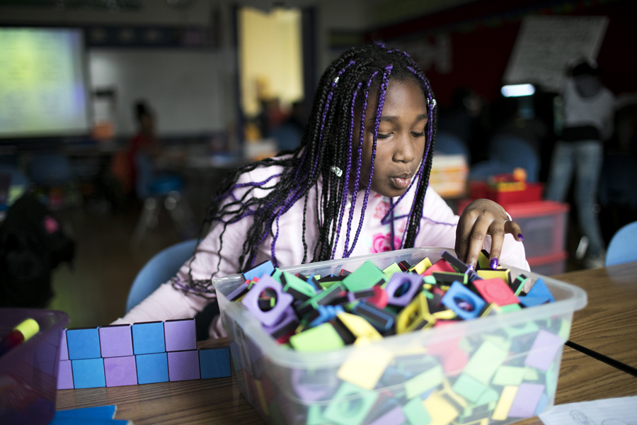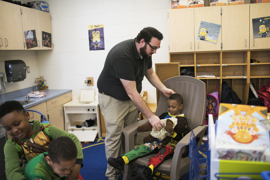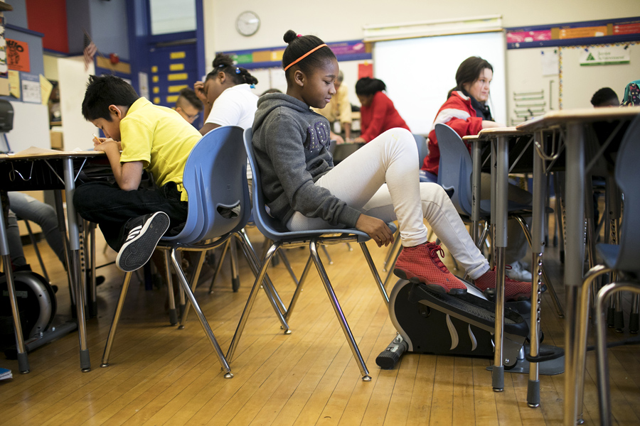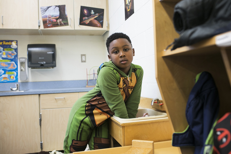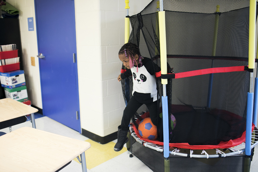 The Ohio-based photographer Maddie McGarvey spent a couple days at Ohio Ave recently meeting and spending time with the students, teachers, and administration trying to shift teachers’ perspective on trauma and their relationships with children. “How are [the children] going to learn a positive way of dealing with conflict if we’re not the ones showing it?” asks Olympia Della Flora, the school’s principal. Students at Ohio Ave are provided self-regulation tools like mini-ellipticals, trampolines, and glitter jars, which children can use to become centered during the school day. Teachers, too, find tools to self-calm. Read more in Lewis’ story “One Ohio School’s Quest to Rethink Bad Behavior.”
