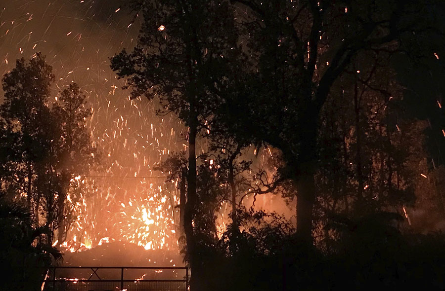 Read moreIn this photo released by U.S. Geological Survey, lava is shown burning trees and ground cover in the Leilani Estates subdivision near the town of Pahoa on May 3, 2018 #