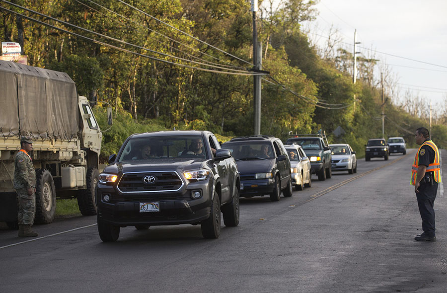 Read moreAfter a mandatory evacuation, Leilani Estates residents line up on the road leading to the area, on May 4, 2018. Due to unsafe conditions in the area, authorities were not allowing residents back to their homes. #