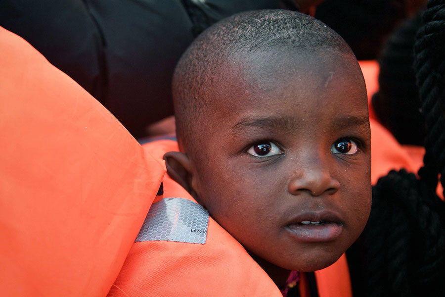 Read moreA rescued child sits in a rescue craft off the Libyan coast on May 12, 2018. 73 migrants of various nationalities were rescued by MV Aquarius, a rescue vessel chartered by SOS-Mediterranee and Doctors Without Borders (MSF). #