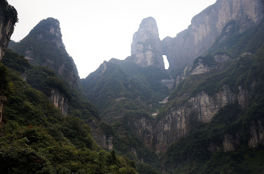 Read moreTianmen Mountain, a famous mountain with a large naturally occurring cave called "Heaven's Gate" near its peak, photographed in Zhangjiajie National Forest Park on September 1, 2013. #