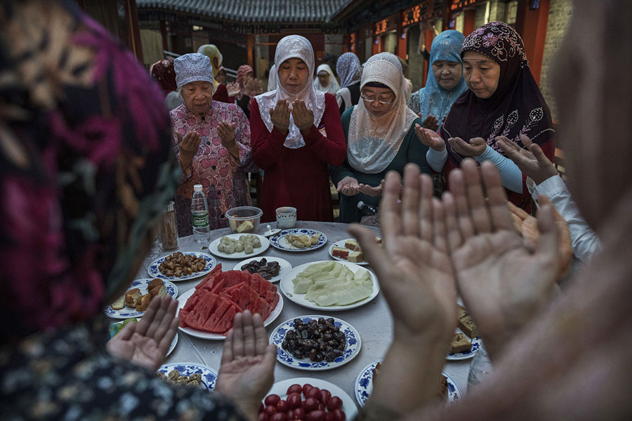 Read moreWomen from the Hui Muslim community pray over food before breaking their fast during Ramadan at the Nanxiapo Mosque in Beijing, China, on June 8, 2018. Islam in China dates back to the 10th century as the legacy of Arab traders who ventured from the Middle East along the ancient Silk Road. Of an estimated 23 million Muslims in China, roughly half are Hui, who are ethnically Chinese and speak Mandarin. China's constitution provides for Islam as one of five "approved" religions in the officially atheist country, though the government enforces severe limits. Worship is permitted only at state-sanctioned mosques and proselytizing in public is illegal. #