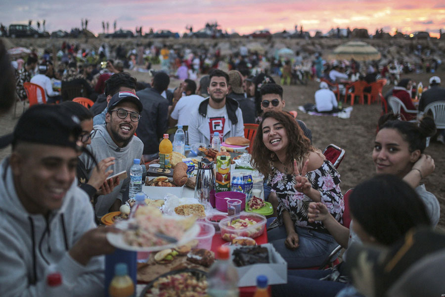 Read moreFriends pose for a photo as they prepare to break their fast on the beach during Ramadan, on Rabat Beach in Morocco on June 9, 2018. Stocked with food and drinks, local families and friends swarm daily to the beach during Ramadan to enjoy the Atlantic breeze and take in the ocean view and, when the day’s fasting is declared over, share in the iftar. #