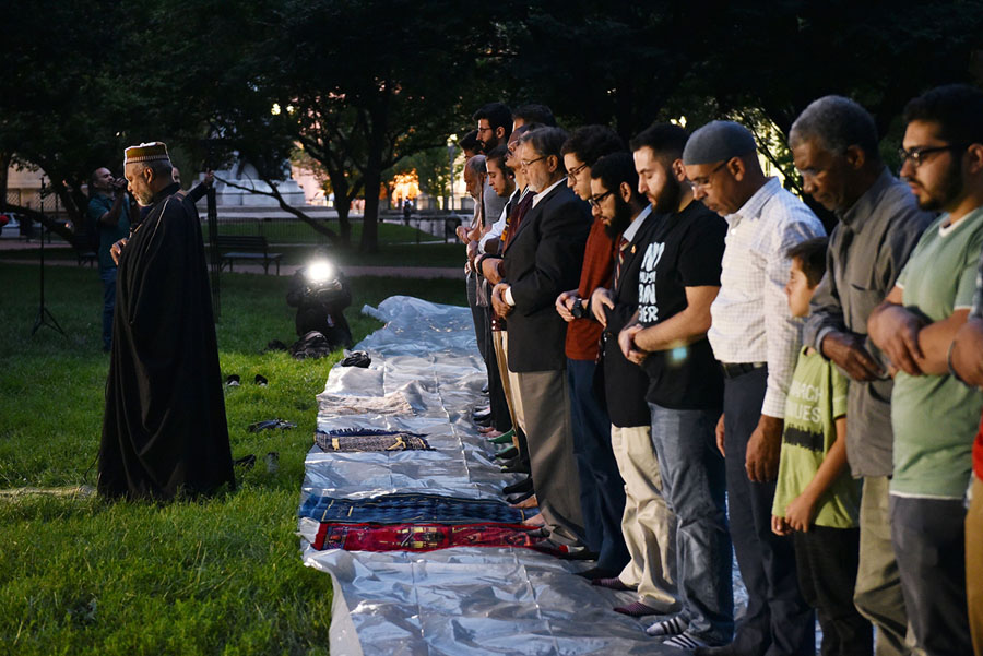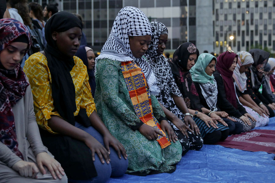 Read moreMuslim women offer Maghrib, sunset prayers, during an immigration rally and iftar during the month of Ramadan outside ICE's New York field office at Foley Square in Manhattan, New York, on May 23, 2018. #