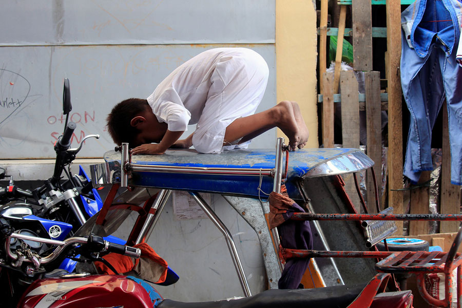 Read moreA Filipino Muslim boy prays on the top of a motorcycle cab during the second day of Ramadan outside a mosque in Baseco, Tondo City, Metro Manila, Philippines, on May 18, 2018. #