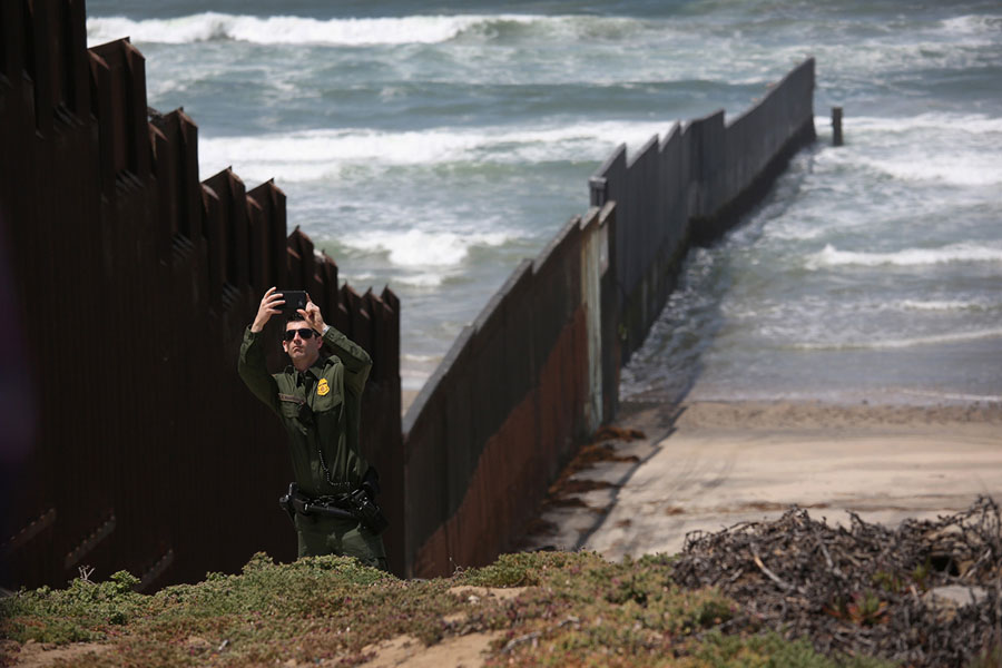 Read moreA U.S. Border Patrol agent takes a selfie at the U.S.-Mexico border fence on April 30, 2016, near San Diego, California. On this day, five families, some of whose members lived in Mexico and others in the United States, were permitted to meet and embrace for three minutes each at a door in the fence, which the U.S. Border Patrol opened to celebrate Mexican Children's Day. It was only the third time that the fence, which separates San Diego from Tijuana, had been opened for families to briefly reunite. #