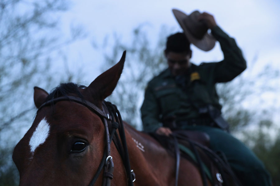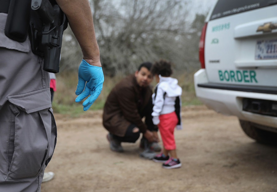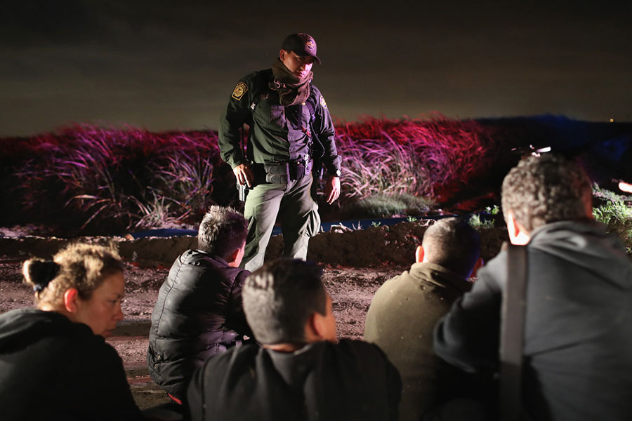 Read moreU.S. Border Patrol agents question undocumented immigrant families at the U.S.-Mexico border fence while taking them into custody on February 21, 2018, near McAllen, Texas. A group of men, women, and children from Central America were picked up after crossing the Rio Grande into Texas, seeking political asylum in the United States. #