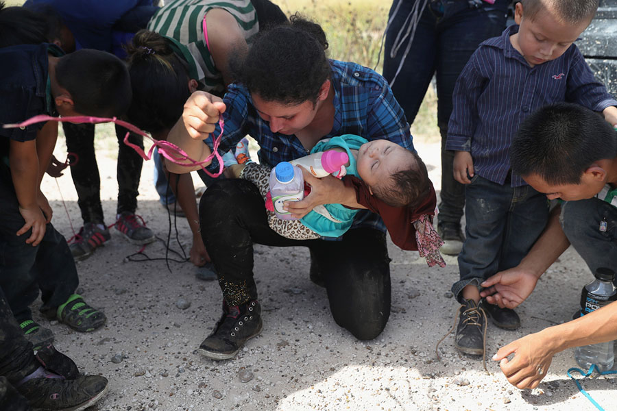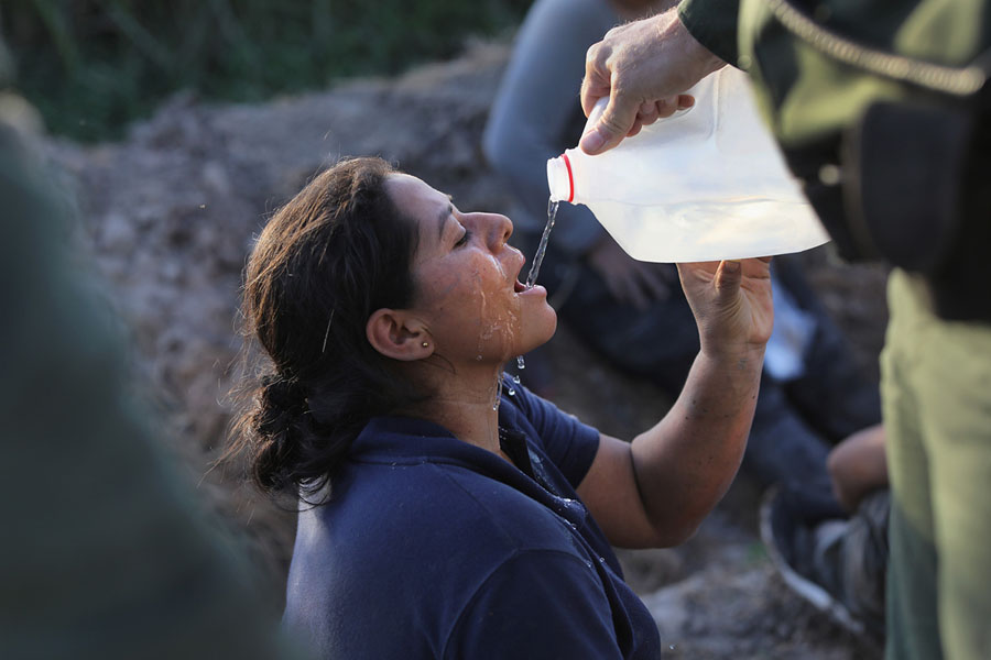 Read moreAn undocumented immigrant is given water by U.S. Border Patrol agents after she was apprehended in a sugarcane field near the U.S.-Mexico Border on June 12, 2018, near Mission, Texas. #