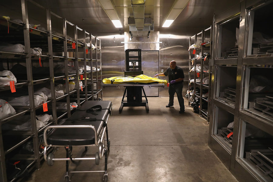 Read moreTrevis Hairston, a death investigator, moves a corpse in the morgue of the Pima County Medical Examiner in Tucson, Arizona, on September 29, 2016. Hundreds of undocumented immigrants die every year, most from dehydration, in the desert while crossing illegally from Mexico into the United States. Forensic anthropologists study personal effects and bodily remains in an effort to identify the bodies and reunite them with loved ones. #
