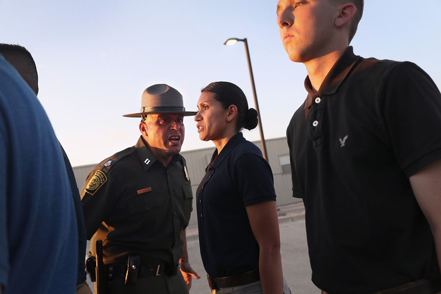 Read moreA U.S. Border Patrol instructor yells at a new trainee upon her initial arrival with fellow agents to the U.S. Border Patrol Academy in Artesia, New Mexico. on August 2, 2017. #
