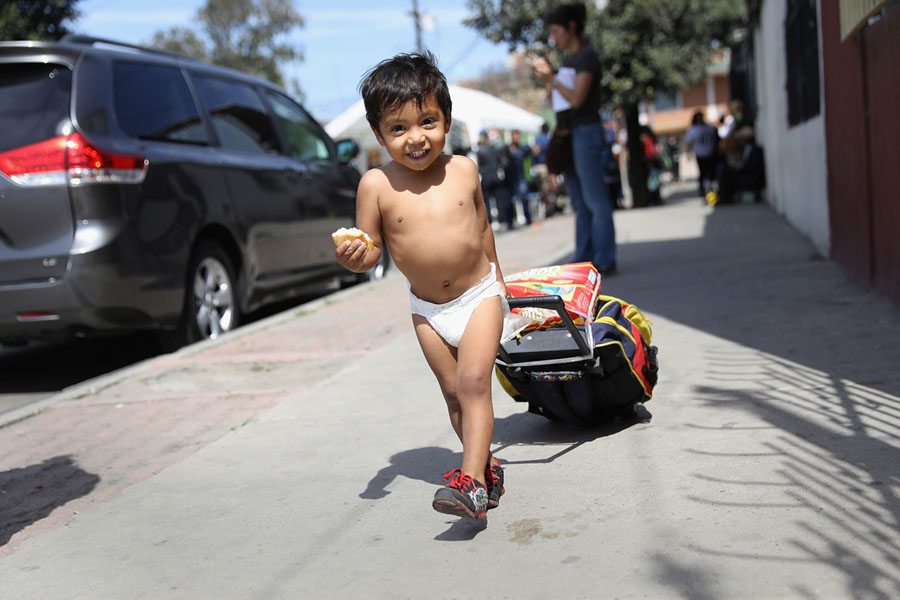 Read moreA Honduran asylum seeker, Daniel Once, 2, arrives at an immigrant shelter with his family on April 25, 2018, in Tijuana, Mexico. More than 300 immigrants, the remnants of a caravan of Central Americans that began almost a month ago, were arriving in Tijuana on the last leg of their journey north within Mexico. They planned to seek political asylum at the U.S. border the following weekend. #