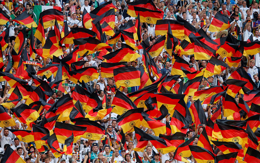 Read moreA supporter of the German national team holds a German flag in a robotic arm as he attends a public viewing event at the Fanmeile in Berlin to watch the Group F match between South Korea and Germany on June 27, 2018. #