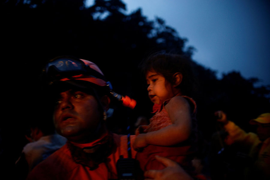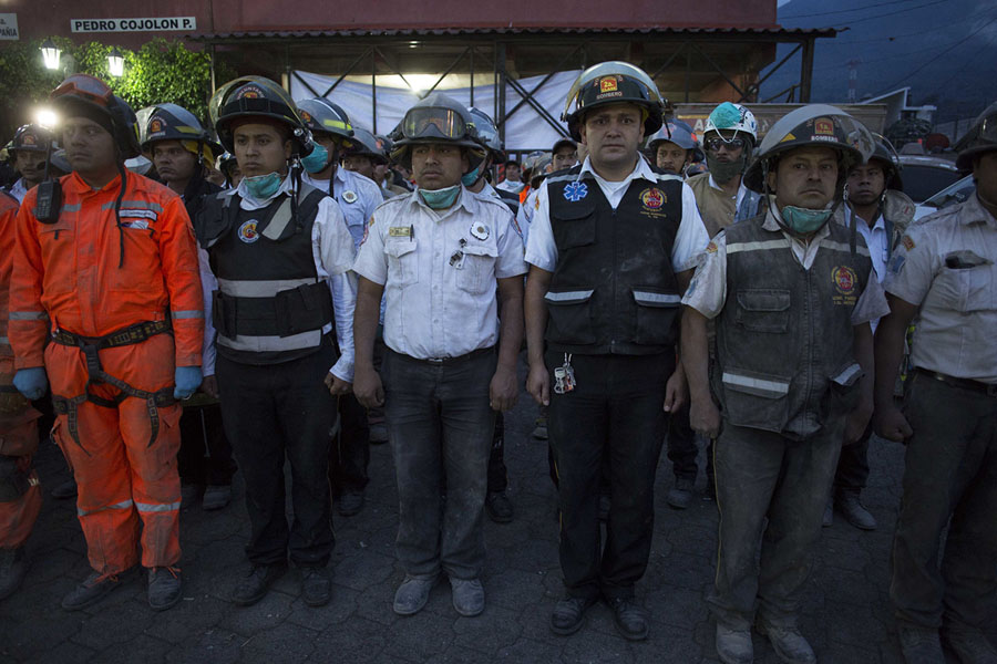 Read moreFirefighters regroup after working on the evacuation of residents near Fuego volcano on June 3, 2018. #