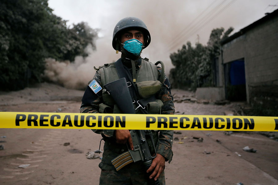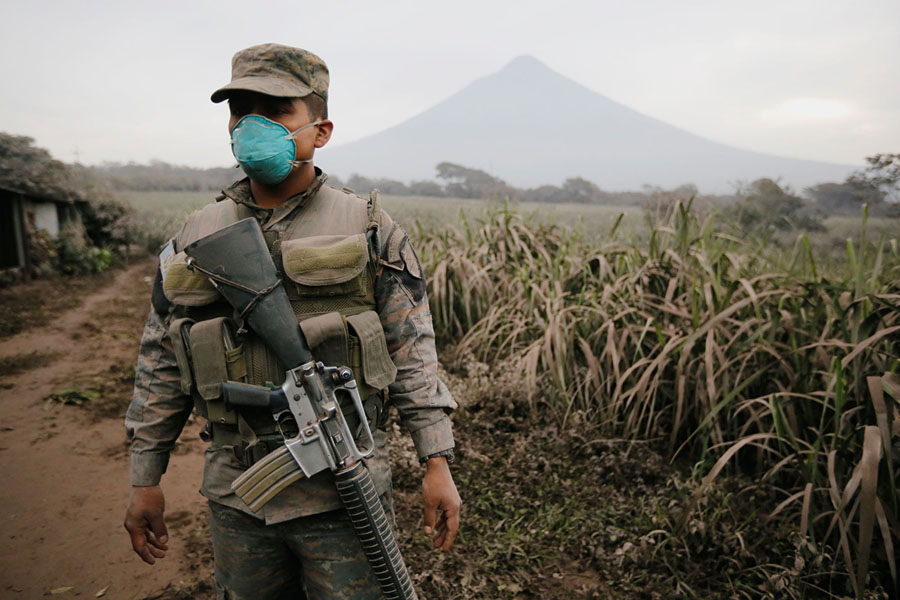 Read moreA soldier keeps watch over an area affected by the eruption near San Miguel Los Lotes in Escuintla, Guatemala, on June 4, 2018. #