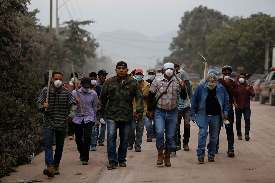 Read moreVolunteers through an area affected by an eruption from Fuego volcano in the community of San Miguel Los Lotes on June 4, 2018. #