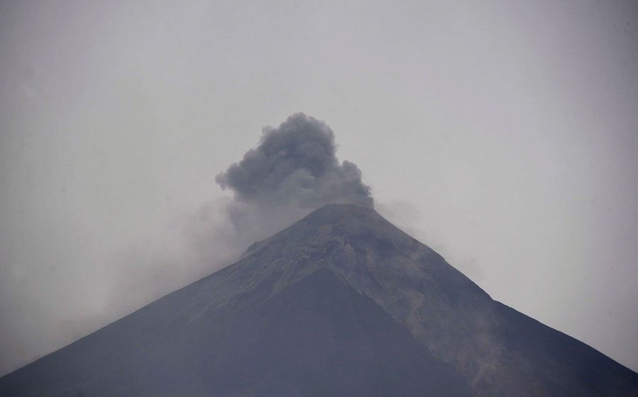Read moreA small amount of ash and steam erupts from Fuego volcano, viewed from San Miguel Los Lotes on June 4, 2018. #