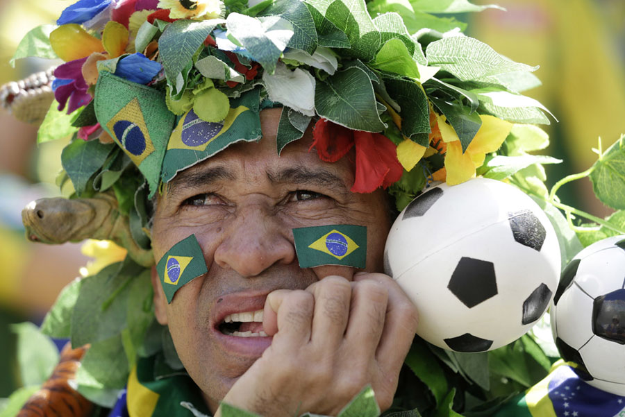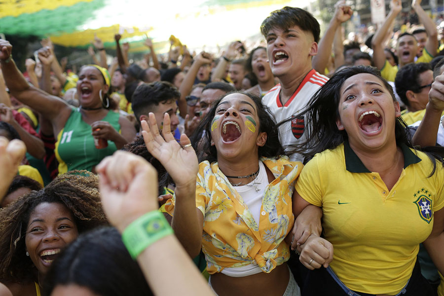 Read moreBrazilian soccer fans celebrate their team's first goal as they watch a live telecast of their team's World Cup match against Costa Rica in Rio de Janeiro, Brazil, on June 22, 2018. #