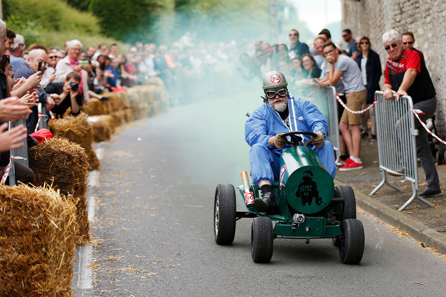 A watery rescue in Russia, dragon boat racing in China, a soap box derby in France, Hawaiian lava viewed from Earth orbit, a welcome to the summer solstice in the U.K., World Cup celebrations and sadness, International Yoga Day in India, flamingos in Kenya, a boxer dressed as a lion in Germany, and much more.