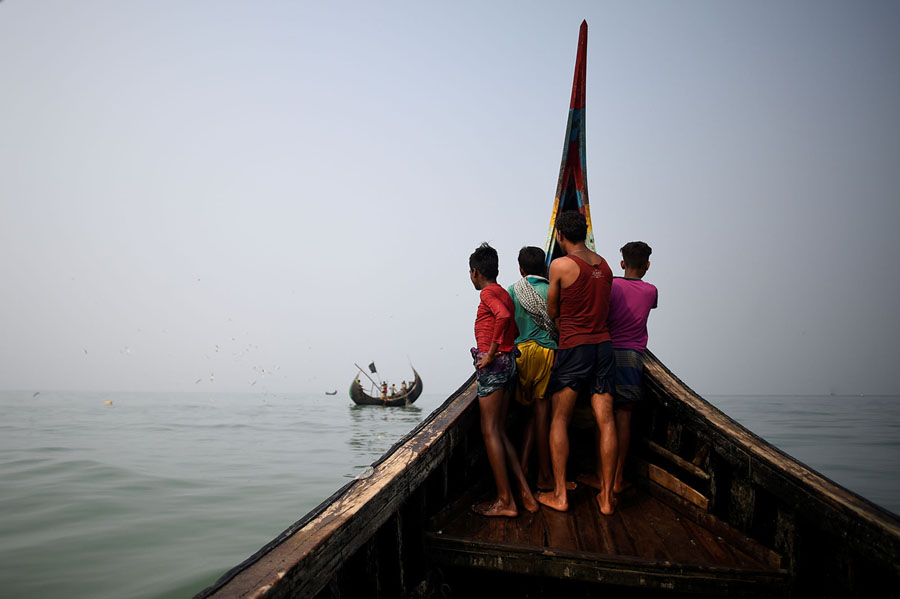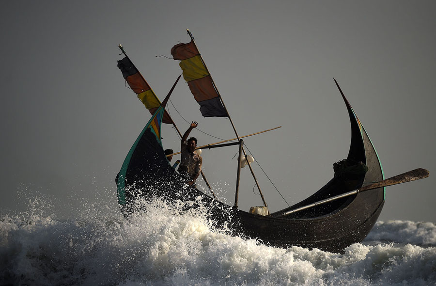 Read moreRohingya refugees crew a fishing boat from Shamlapur Beach heading out to the Bay of Bengal near Cox's Bazar, Bangladesh, on March 21, 2018. The boat is unstable in rough seas, due to its shape. #