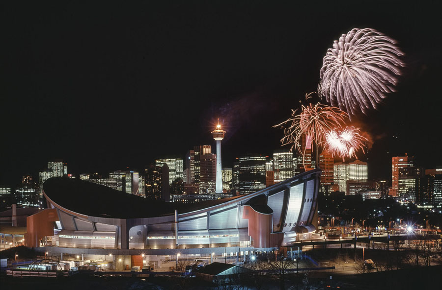 Read moreDowntown Calgary, with the Saddle Dome in the foreground and fireworks above, during the XV Winter Olympic Games held from February 13-28, 1988, in Calgary, Alberta, Canada. #