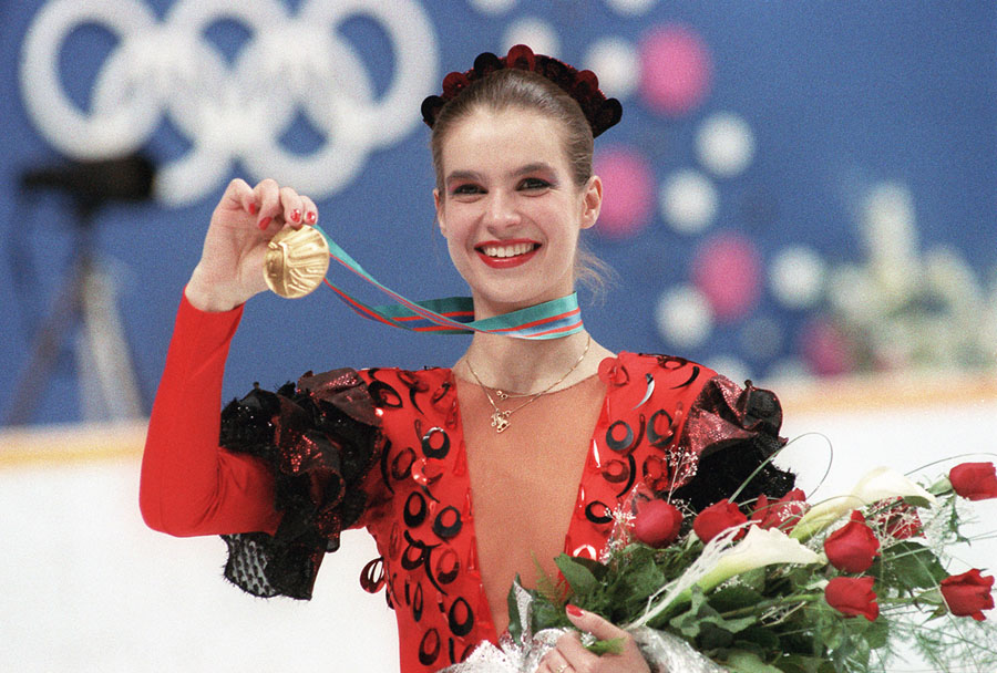 Read moreThe East German figure skater Katarina Witt smiles as she displays her gold medal at the Olympic Saddle Dome in Calgary on February 27, 1988. Witt, second behind her U.S. rival Debi Thomas after the short program, won the free-program event and the overall title to become the first woman figure skater to repeat as Olympic champion (she won the gold medal in Sarajevo in 1984) since the Norwegian skater Sonja Henie. #