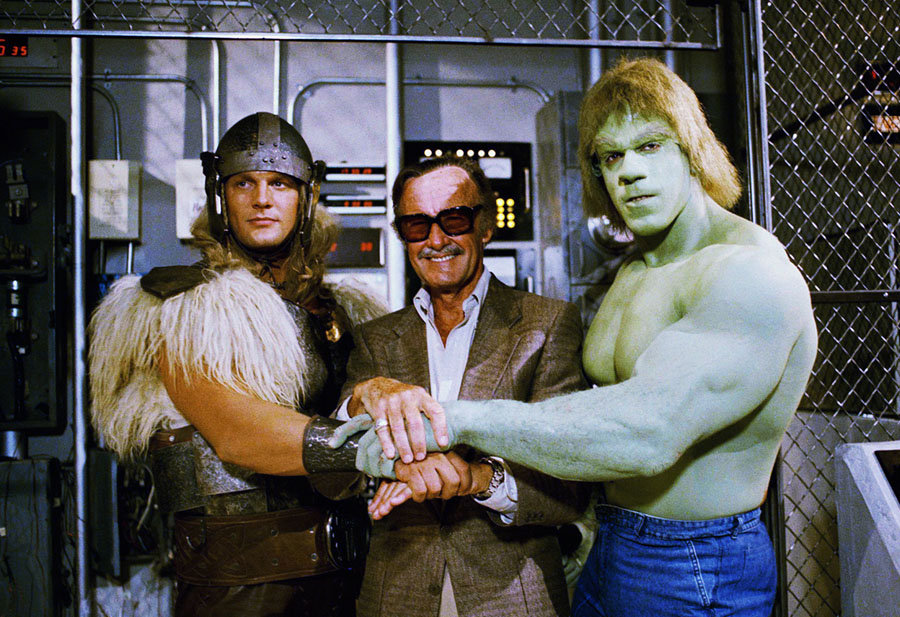 Read moreThe comics impresario Stan Lee, center, poses with The Hulk, portrayed by Lou Ferrigno (right) and Thor, portrayed by Eric Kramer in a special movie for NBC, “The Incredible Hulk Returns,” on May 9, 1988, in Los Angeles, California. Lee said the secret of successfully transferring comic-book characters to television was to avoid making it a carbon copy. #