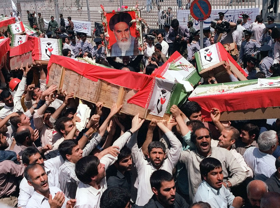 Read moreMourners carry coffins through the streets of Tehran, Iran, on Thursday, July 7, 1988, during a mass funeral four days after the warship USS Vincennes shot down Iran Air Flt. 655 over the Persian Gulf, killing all 290 people aboard. #