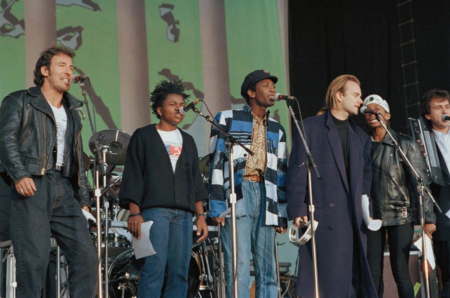 Read moreRock stars, from left, Bruce Springsteen, Tracy Chapman, Youssou N'dour, and Sting are seen at Wembley Stadium, London, on September 1, 1988, as they opened a global rock tour for human rights by Amnesty International. #