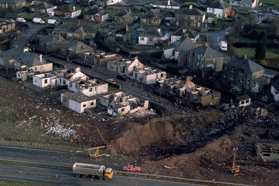 Read moreAircraft debris and destroyed houses in Sherwood Crescent, Lockerbie, Scotland, are seen from the air as traffic passes along the A74 main road following the midair explosion of Pan Am Flight 103, 'Clipper Maid of the Seas,' on December 22, 1988. Flight 103 was brought down by a bomb placed on the plane by Libyan nationals, killing 259 passengers and crew members, and another 11 on the ground. Two men were brought to trial, and one, the Libyan intelligence officer Abdelbaset al-Megrahi, was convicted of 270 counts of murder and sentenced to life in prison. Al-Megrahi was released in 2009 on humanitarian grounds (he was diagnosed with cancer), and died in 2012. Libya's leader Moammar Qaddafi went so far as to accept responsibility and compensate victims, but maintained that he never personally ordered the attack. #