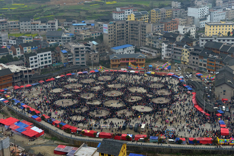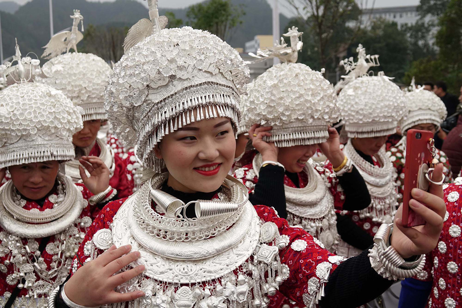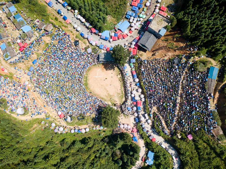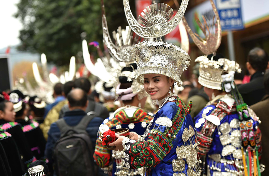 Read moreMiao people wearing ethnic costumes participate in the Lusheng Festival in Huangping County on November 15, 2017, in Qiandongnan Prefecture. Thousands of Miao people gathered in Huangping county to celebrate the traditional 3-day festival. Lusheng (a Miao musical instrument) contests, song and dance contests, horse races, bull fights, bird fights, cock fights, silver ornaments and embroidery competitions are held during the event. #