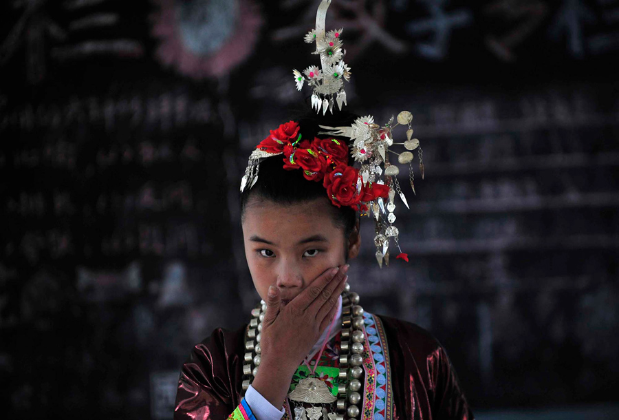 Read moreAn ethnic Dong minority girl applies makeup before participating in a Kam Grand Choir performance in Tongguan village of Liping county, on November 12, 2011. More than 2,000 local ethnic Dong minority residents gathered to participate in a Kam Grand Choir performance in memory of 18 young couples who sacrificed themselves for love, according to a local tale. #