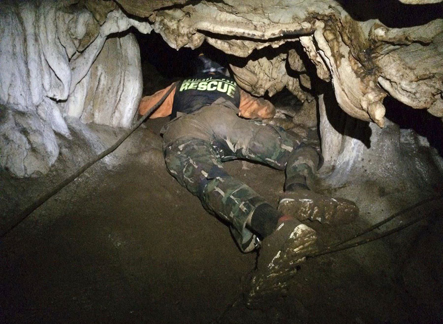 Read moreA rescuer makes his way down at the entrance to a cave complex where 12 boys and their soccer coach went missing, in Mae Sai, Chiang Rai province, in northern Thailand, on July 2, 2018. #