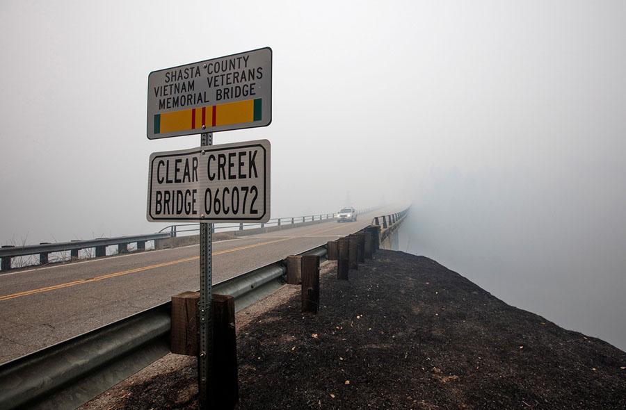 Read moreA young gray fox pants while taking cover under a side rail on the side of the road during 108-degree heat as the Carr Fire rages on near Whiskeytown, California, on July 27, 2018. #