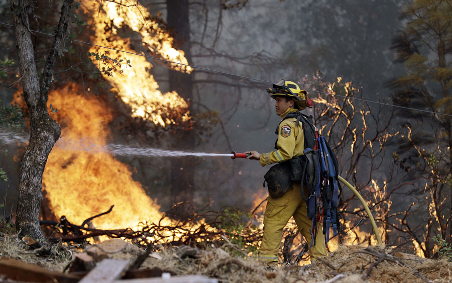 Dry conditions, high temperatures, and strong winds have once more spawned several large and destructive wildfires across the state of California. Thousands of firefighters are now battling multiple blazes that have burned hundreds of thousands of acres in the past few weeks, and recently claimed at least eight lives. Gathered below: a collection of images of those affected by these recent fires, and some of the dramatic scenes of destruction left in their wake.