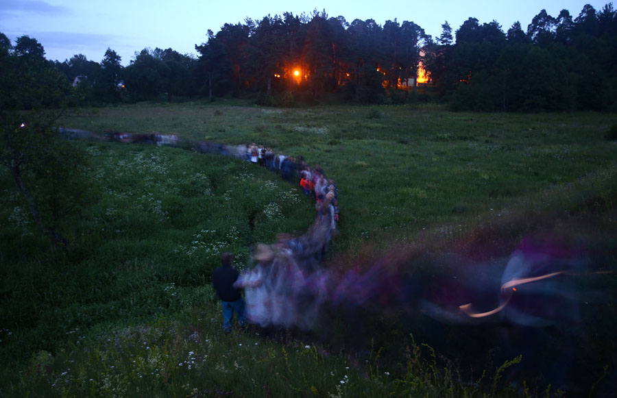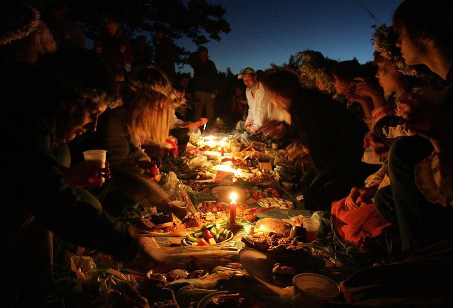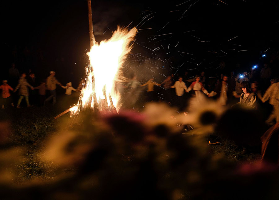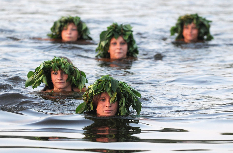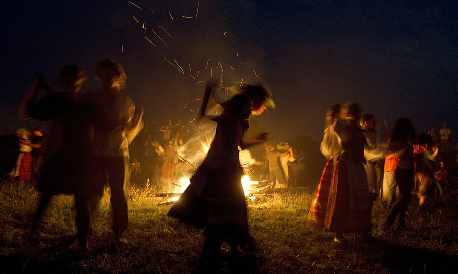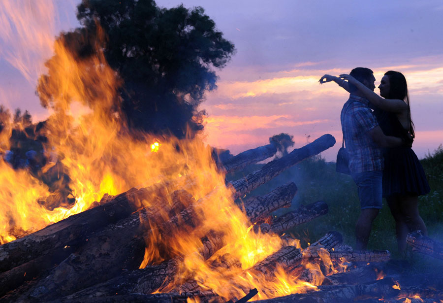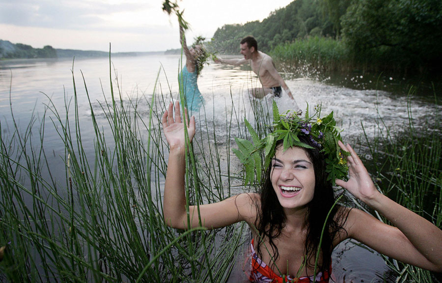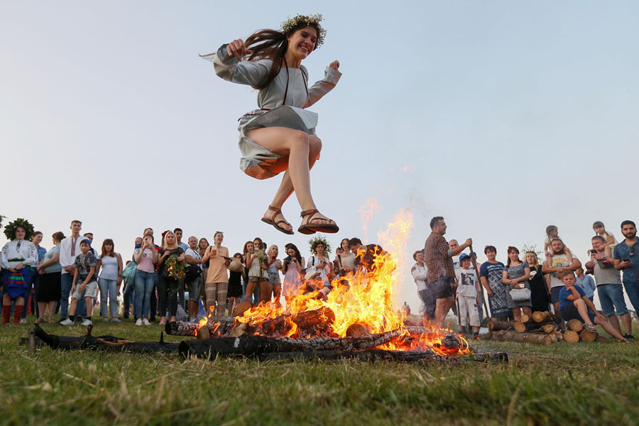 In parts of Ukraine, Belarus, Poland, and Russia, an ancient pagan summer rite called Kupala combined with the traditional Orthodox feast of Saint John the Baptist, becoming Ivan Kupala Night, a festival celebrating the summer solstice. On Ivan Kupala Night, young people wear wreaths symbolizing purity, people sing and dance around bonfires, and they bathe naked in rivers and lakes. Many gather up their courage and leap over fires as a test of faith, to purge themselves of their sins and bad luck, and to improve their health. Collected here, a handful of images from Ivan Kupala Night celebrations in recent years.