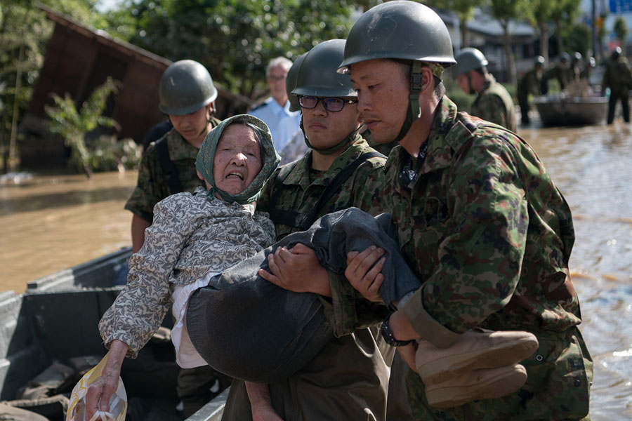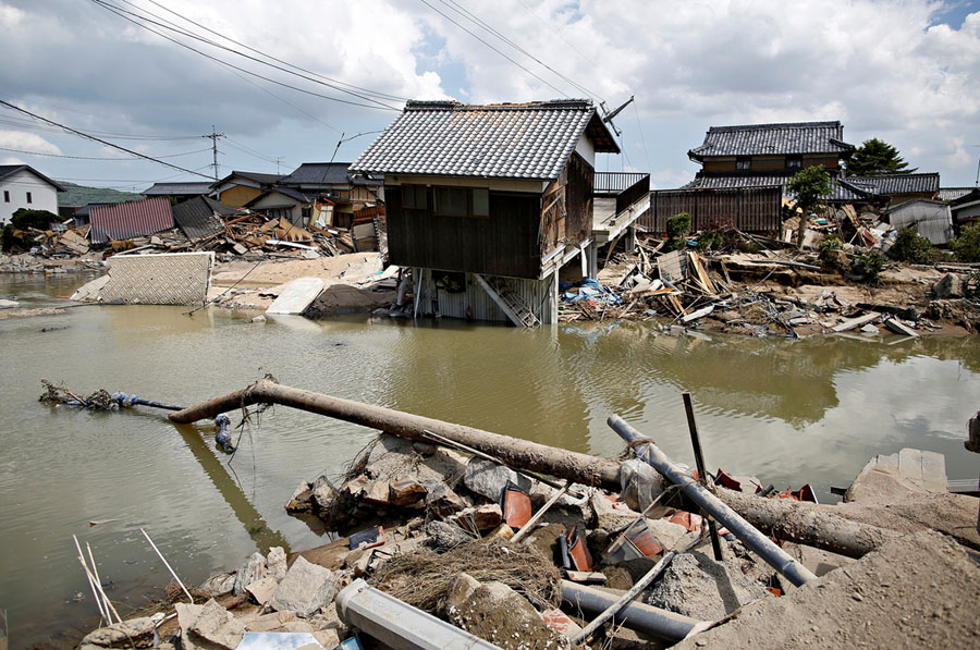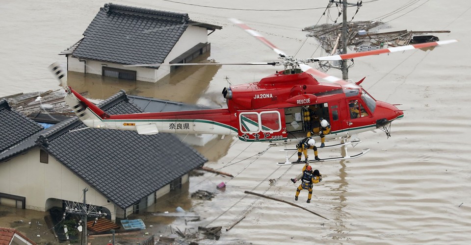 Over the weekend, sustained heavy rainfall hit parts of western and central Japan, causing flash flooding, setting off landslides, submerging floodplains, and forcing more than 2 million residents to evacuate. Today, Japan’s National Police Agency announced at least 200 people had died, and dozens were still missing, in the worst weather-related disaster to hit Japan in more than 30 years. More than 70,000 rescue workers are at work in hard-hit areas searching for survivors as the damage to villages, roads, and infrastructure is being assessed. Hundreds of thousands of homes remain without power or clean water.