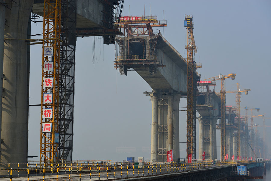Read moreBridge pillars stand at a construction site of a railway bridge built by China Railway Bridge Bureau, as part of the new high-speed Wuhan-Shiyan rail line in Xiangyang, Hubei province, on November 8, 2017. #