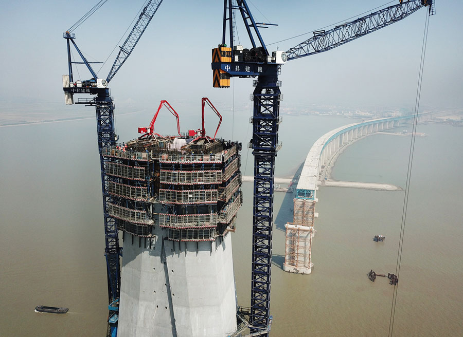 Read moreAn aerial view of the Hutong Yangtze Bridge connecting Shanghai and Nantong, under construction on April 19, 2018, in Nantong, Jiangsu Province. When completed, the structure will be the world's longest cable-stayed bridge. #